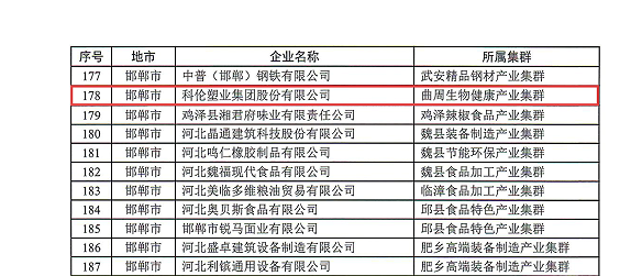 科倫塑業(yè)集團股份有限公司獲評河北省特色產業(yè)集群“領跑者”企業(yè)